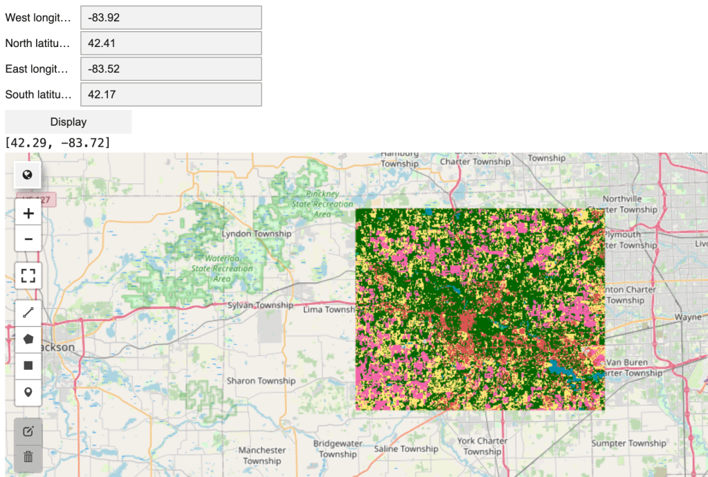 Display land cover categories for Ann Arbor as a colored layer on the map and interpret the class labels.